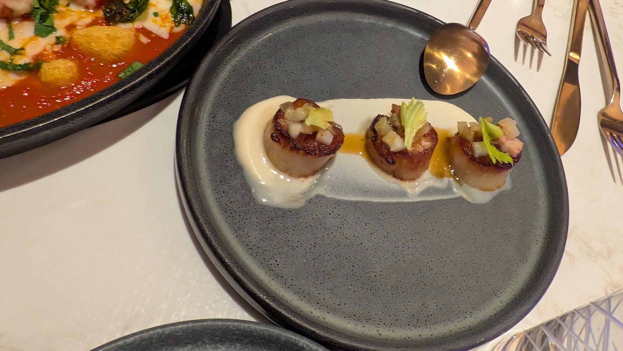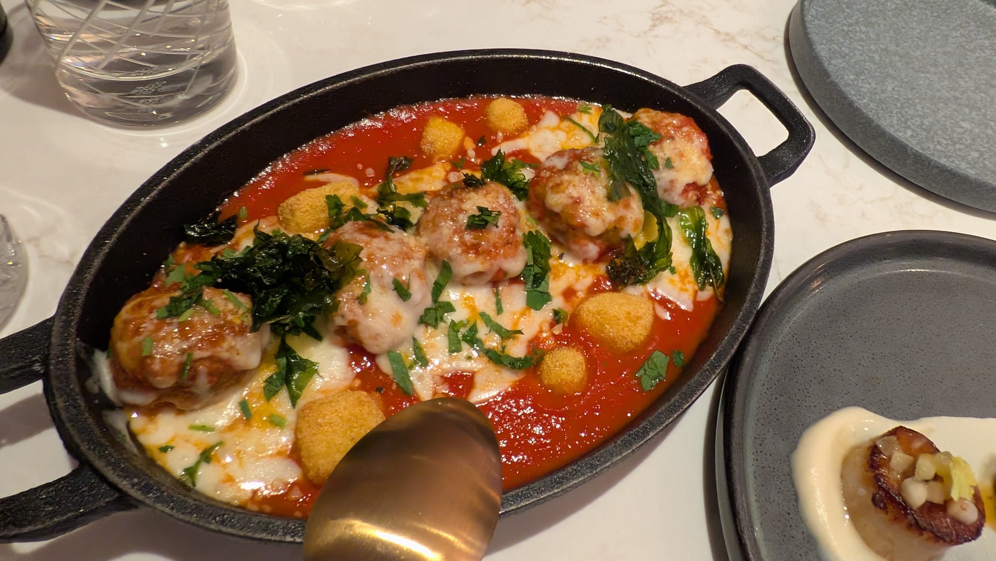 The appetizers came out promptly, and did not disappoint. The scallops and meatballs were both some of the best we've had.