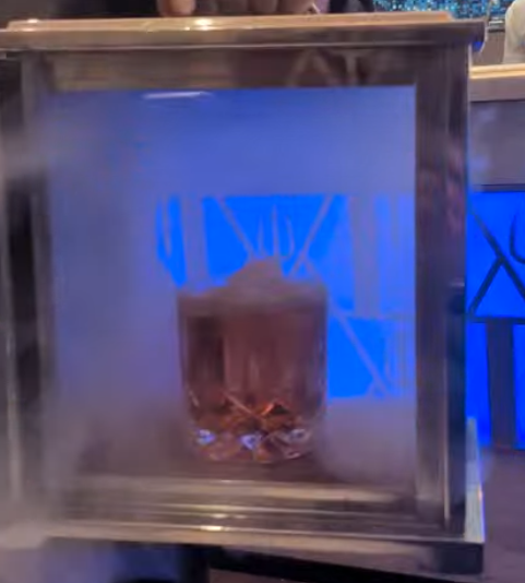While enjoying the appetizers, I asked our server about a drink a friend had mentioned, and it was apparent to her that I was referring to their signature "Smoke on the Water" cocktail. Made with Rye, Aperol, Averna Amaro, Sweet Vermouth, and smoked with cherry wood, this masterpiece soon showed up and was absolutely delicious. It's a bit sweet, so I'm not sure I would have more than one, but I'd definitely have another the next time I go back.